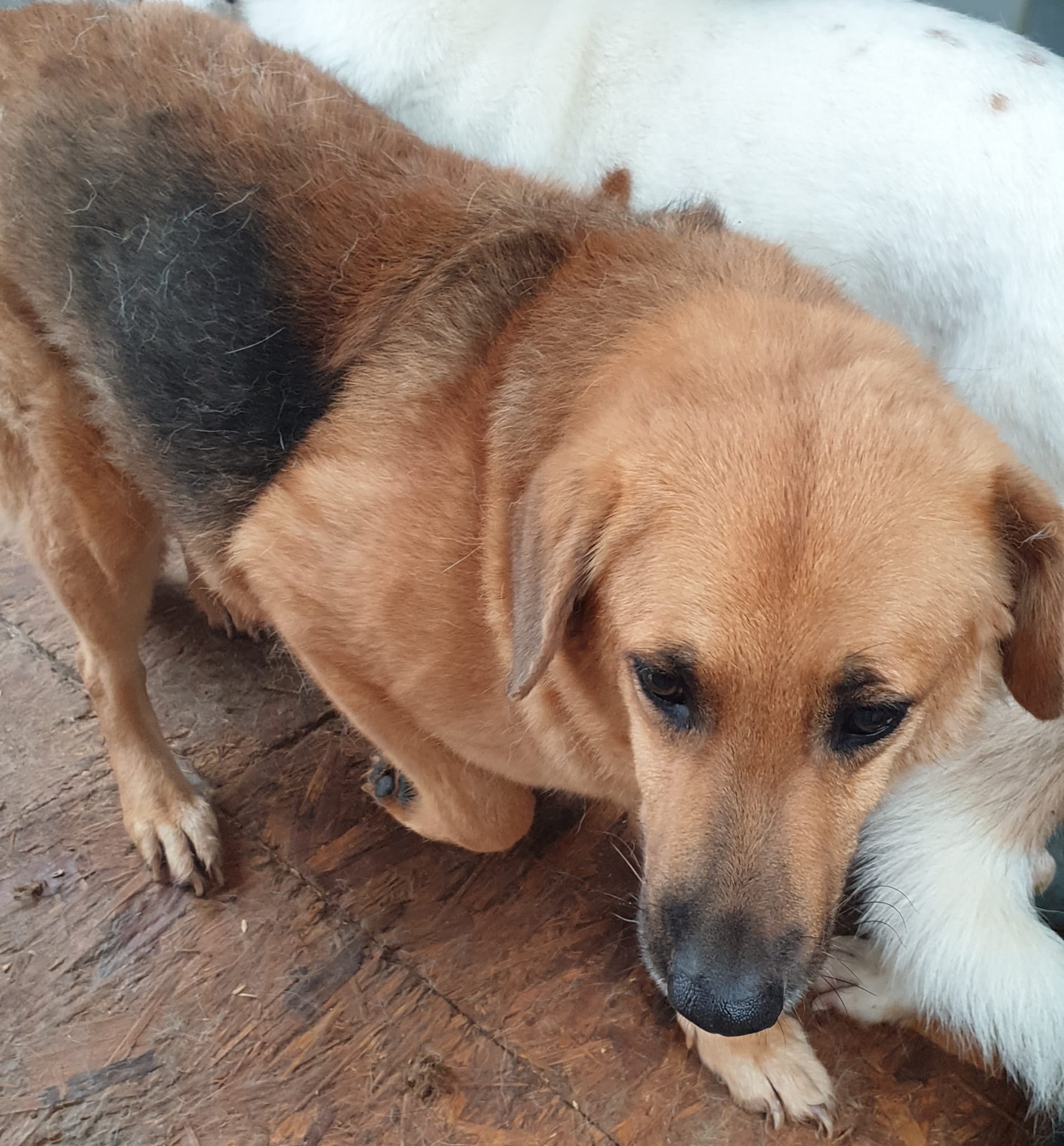 Sedan februari 2021 har Coco suttit i sin bur. År efter år har hon sett andra hundar komma och gå – men för Coco har dörren aldrig öppnats till ett eget hem. Hon gör inte väsen av sig utan sitter där stilla. När du sätter dig hos henne kryper hon inte fram direkt. Coco väntar. Hon tittar. Men stannar du en stund närmar hon sig och tar emot beröring och klappar.
