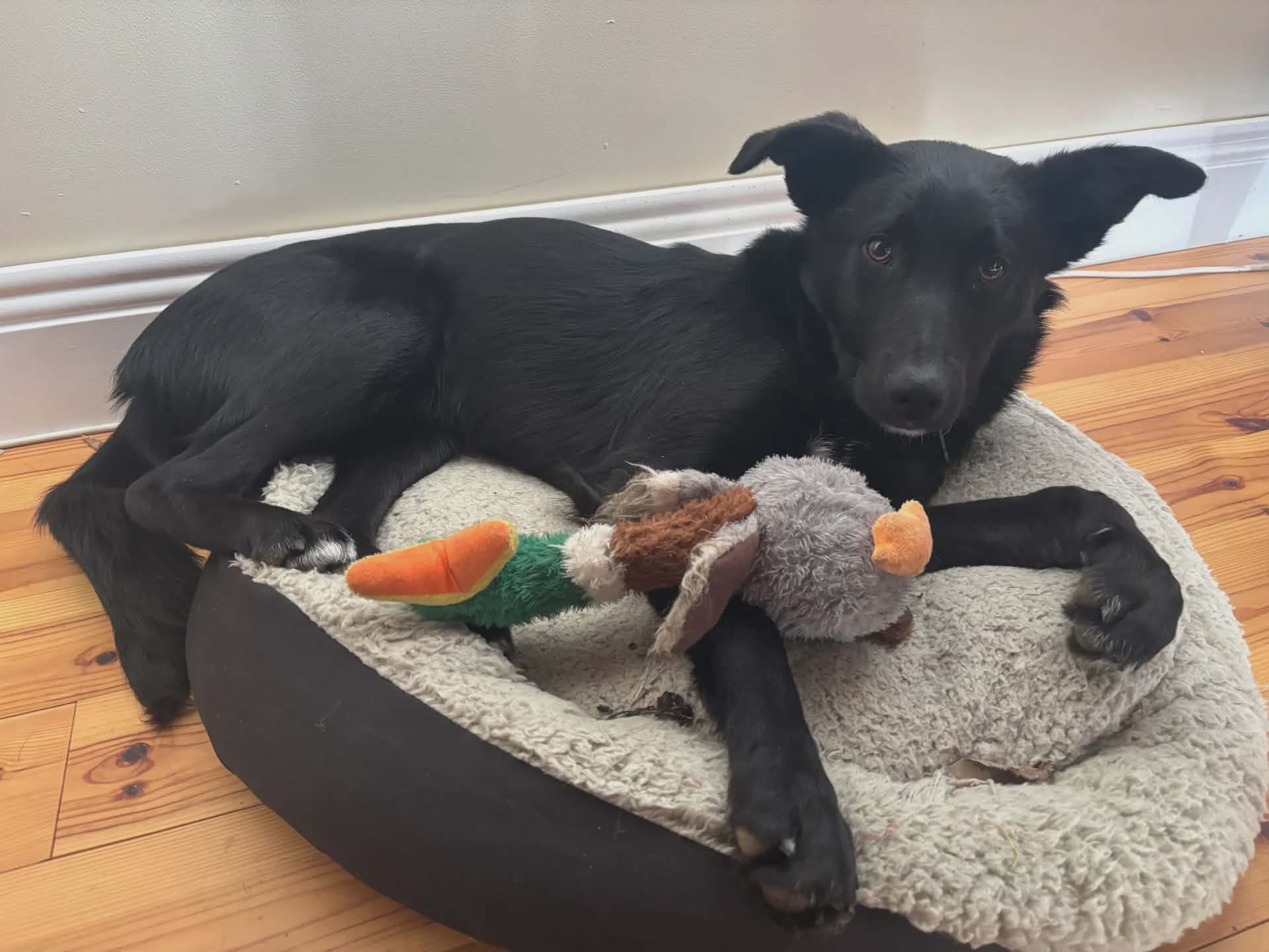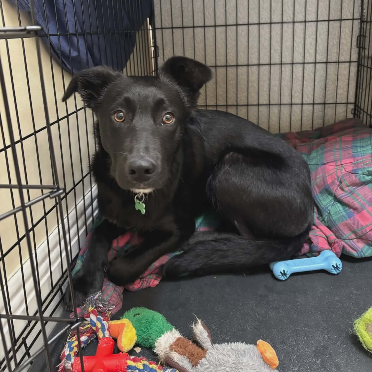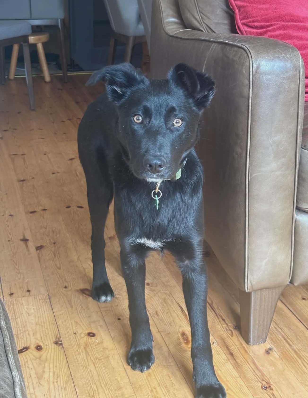 Vi tror han är en blandning av collie och labrador. Vi vet i alla fall att han kommer att växa upp till en större och aktiv hund. Pepsi fungerar bra tillsammans med andra hundar, både hanar och tikar.