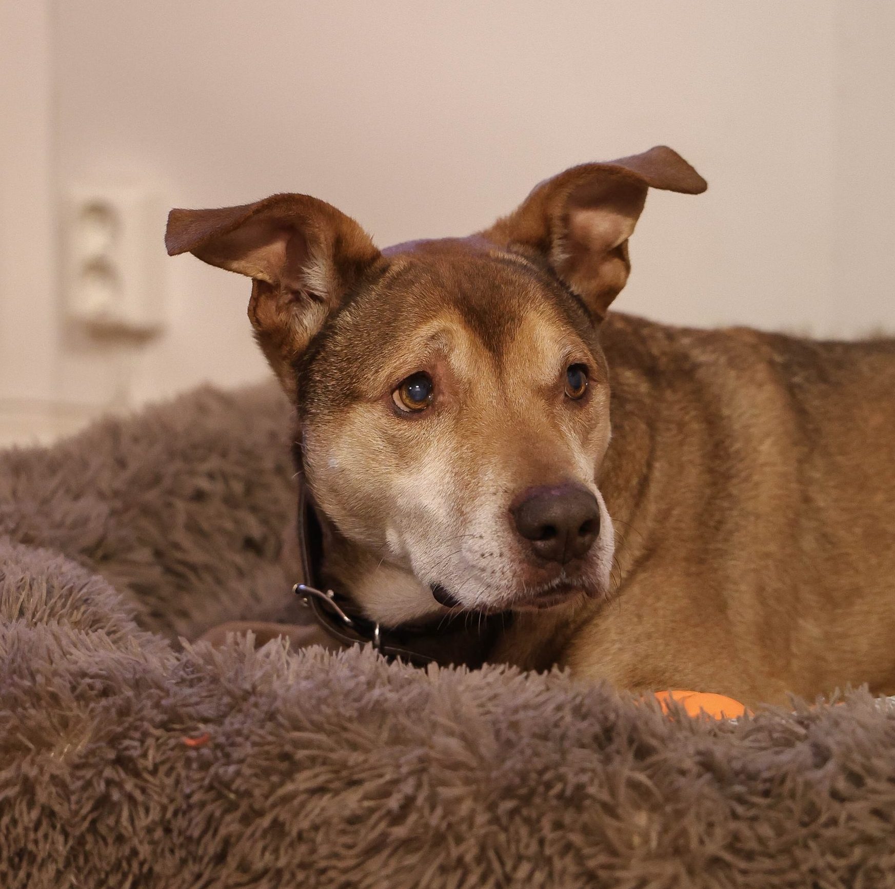 Han fungerar utmärkt tillsammans med andra hundar och har inga problem med valpar, men vi tror att han skulle trivas allra bäst i sällskap av en lugn och respektfull hundkompis. Gärna någon som förstår att han behöver sin egen plats och inte är på honom hela tiden.