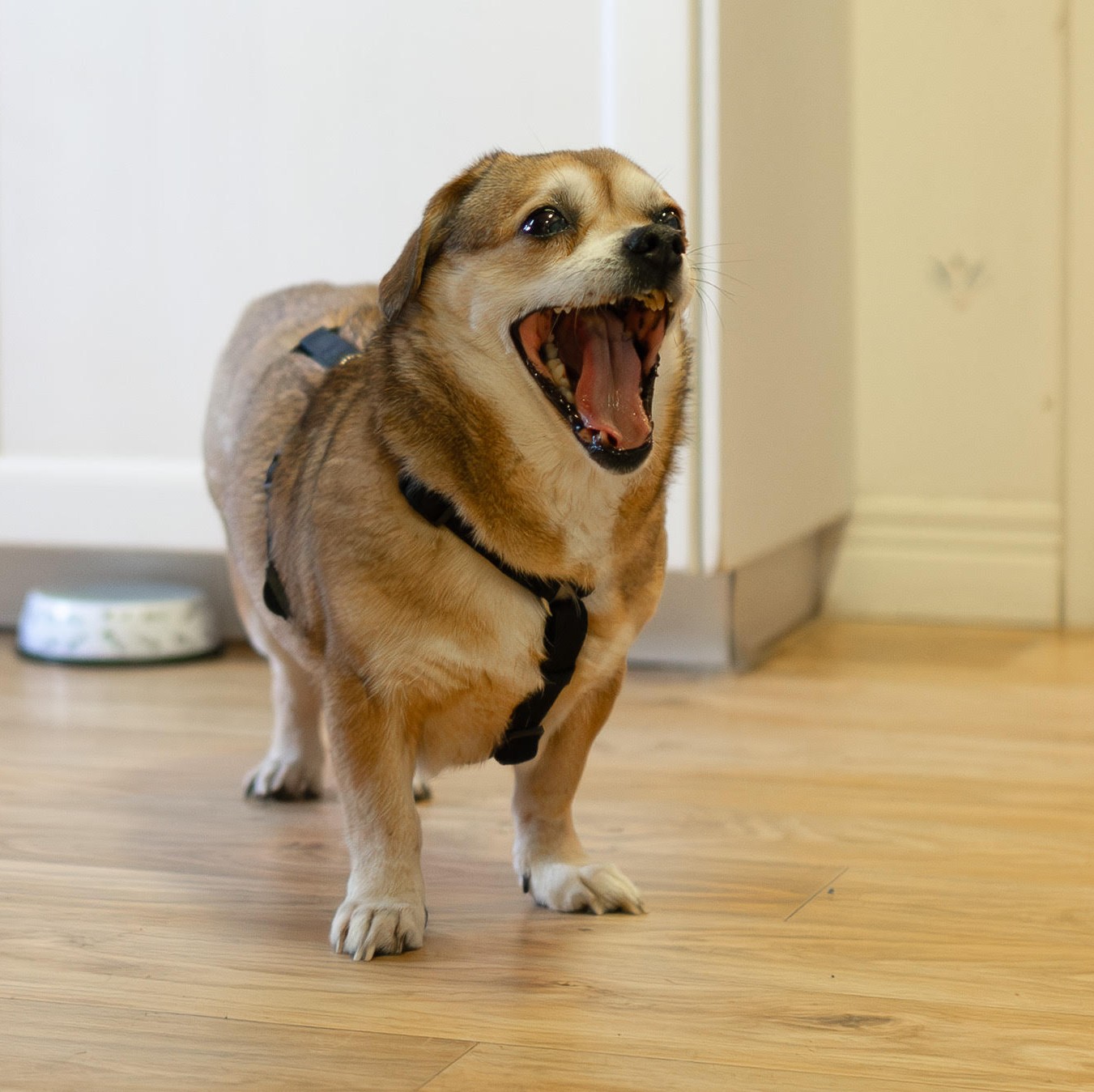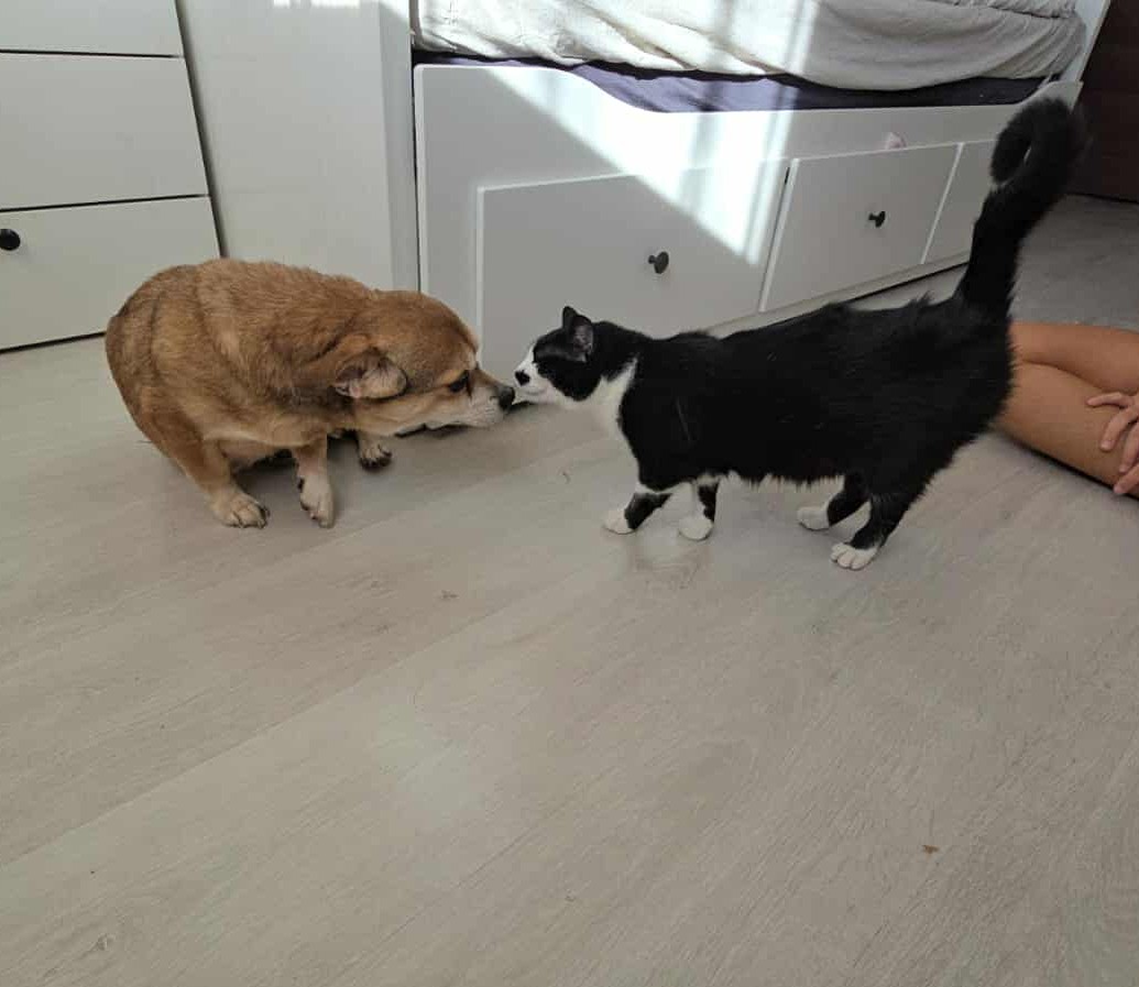 Hon fungerar med de andra hundarna men kan emellanåt markera om det blir för stimmigt. Signe träffade även katt i sitt tidigare jourhem i Rumänien.