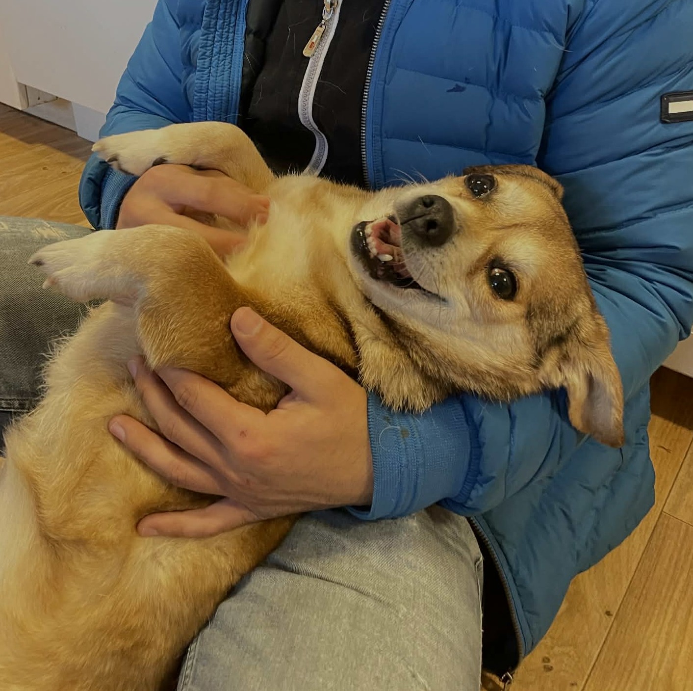 Signe räddades med flera andra hundar (bland annat Missy, hennes valp) från ett nedbrunnet hus, via Djurambulansen, och kom till ett rescue vi samarbetar med. I början av mars kom Signe till Sverige och vår Gård.