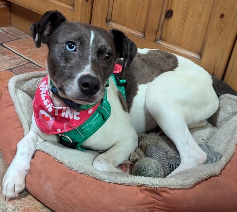 Tucker är en lekfull och härlig ung kille som är en mix av lurcher, jack russell och staffe. Han är full av energi, glädje och kärlek till livet. Tucker älskar långa promenader, att jaga sin boll och allt som innebär aktivitet och rörelse. Bilåkning är också en stor favorit!
